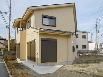 変形した土地を有効に使った建物です。お施主様と工務店の知恵と工夫で建てられました。もちろん高気密高断熱で省エネなお家です。